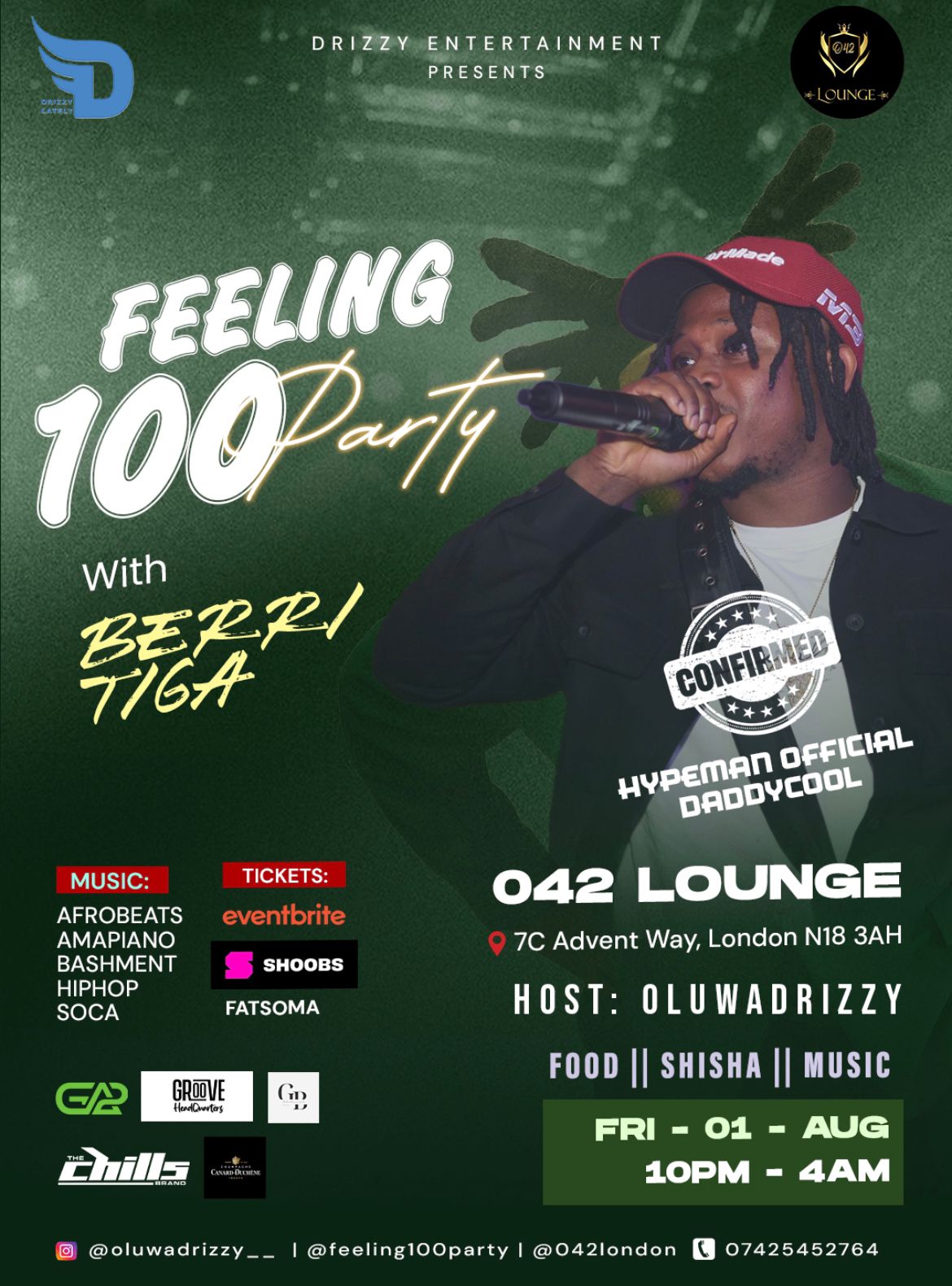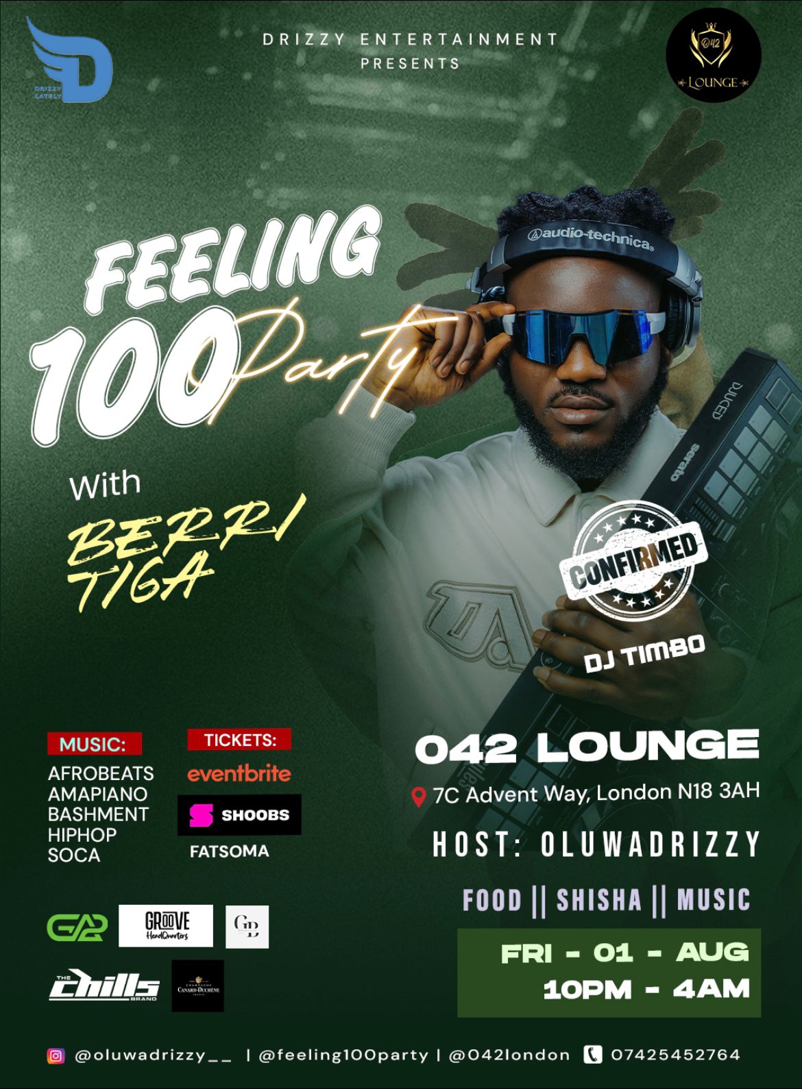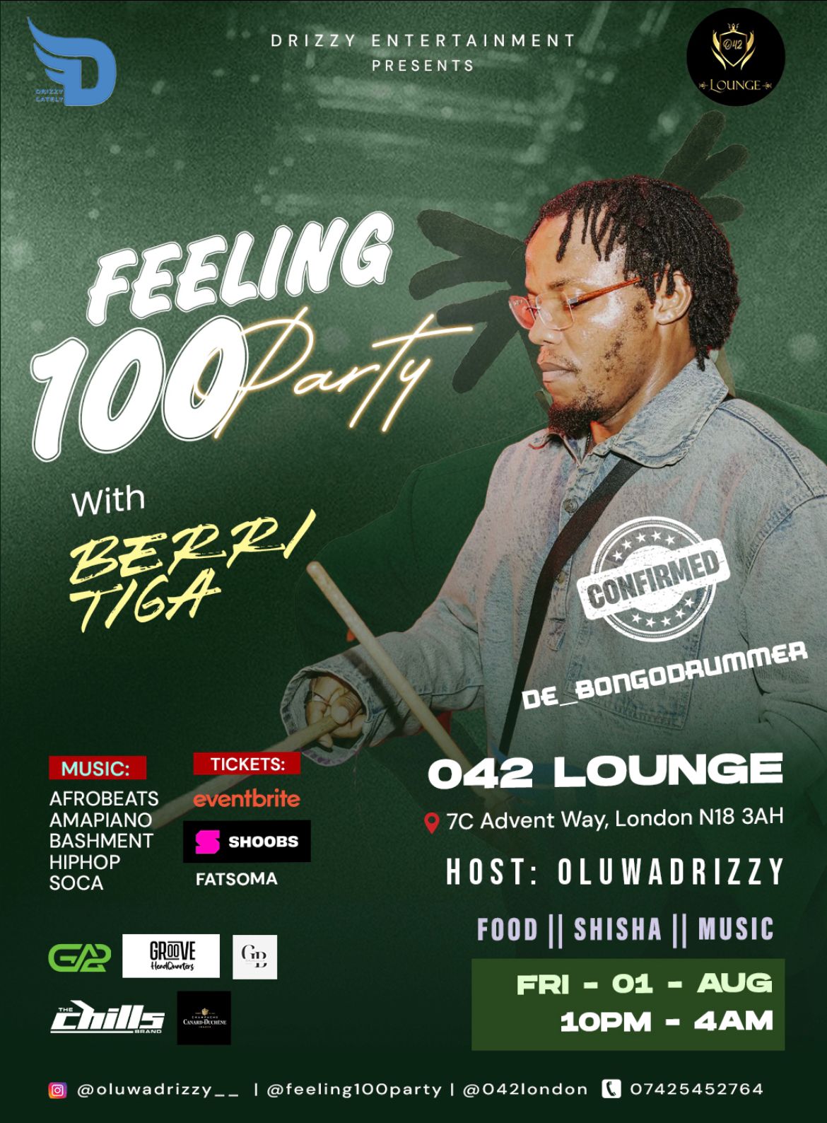 Join us for FEELING 100 PARTY . Expect a total celebration of music, entertainment and culture. Expect to hear the REAL Afrobeats/Bashment/Soca, Hip Hop, R&B, Amapiano & many more from across t...